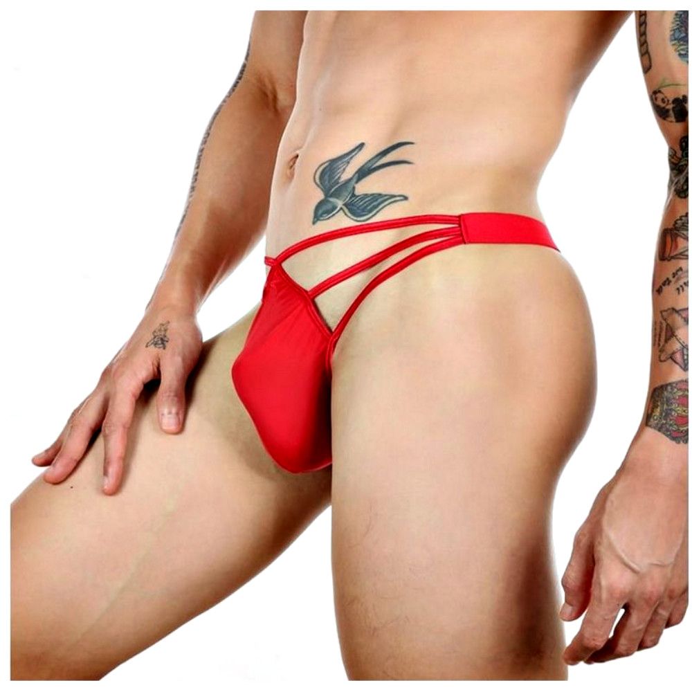 Красные сексуальные трусы-стринги на тонких бретелях.