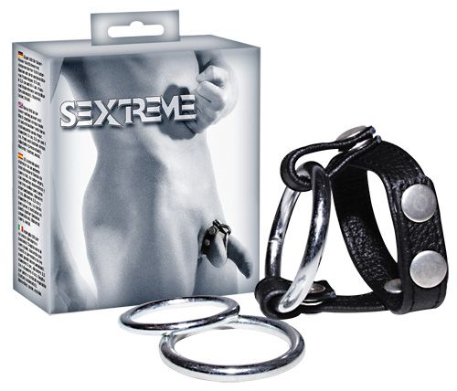 Подхват для мошонки с 3 съемными эрекционными кольцами Leder-Riemen. Диаметр колец - 3, 3,5 и 4 см.