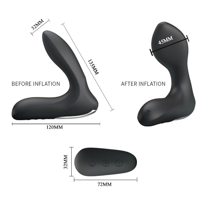 Этот массажер простаты с функцией расширения и 12 режимами вибрации обеспечивает максимальные анальные ощущения. Ультра растягивающаяся пробка надувается, что позволит получить чувство потрясающей наполненности. Она создает идеальное давление на простату для самой сокрушительной и незабываемой кульминации, которую только можно себе представить! Максимальный диаметр в надутом состоянии - 4,5 см.