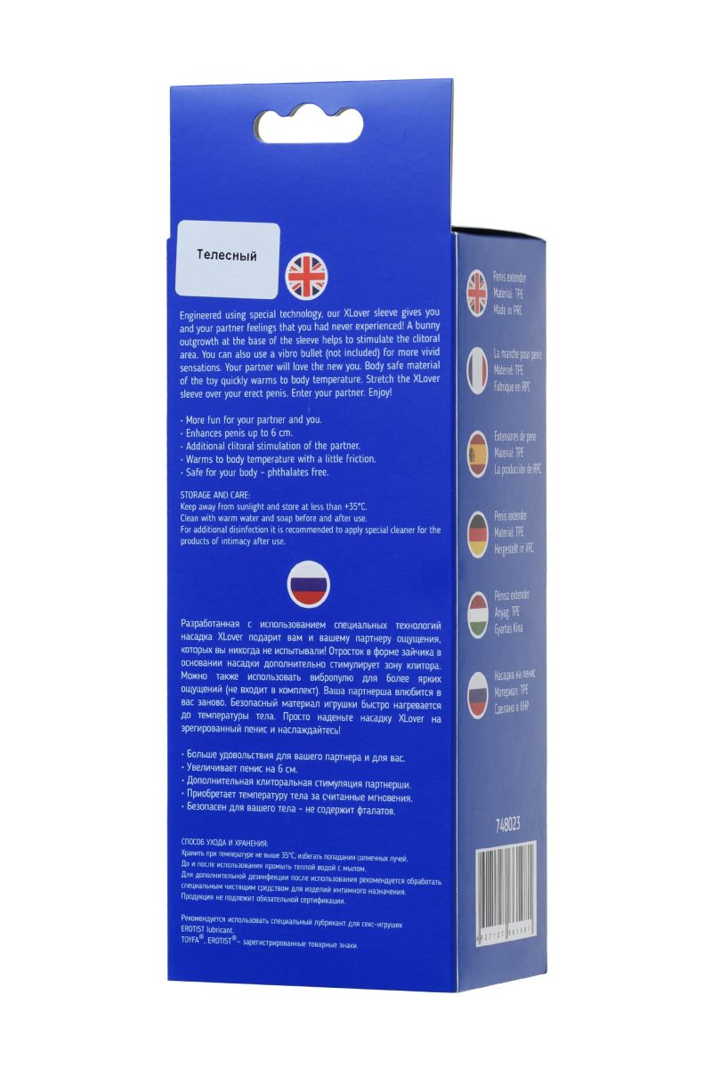 Разработанная с использованием специальных технологий насадка XLover подарит вам и вашему партнеру ощущения, которых вы никогда не испытывали! Отросток в форме зайчика в основании насадки дополнительно стимулирует зону клитора. Можно также использовать вибропулю для более ярких ощущений (не входит в комплект). Ваша партнерша влюбится в вас заново. Безопасный материал игрушки быстро нагревается до температуры тела. Просто наденьте насадку XLover на эрегированный пенис и наслаждайтесь! Больше удовольствия для вашего партнера и для вас. Увеличивает пенис на 6 см. Дополнительная клиторальная стимуляция партнерши. Приобретает температуру тела за считанные мгновения. Безопасен для вашего тела - не содержит фталатов. Длина дополнительного стимулятора - 5,5 см.