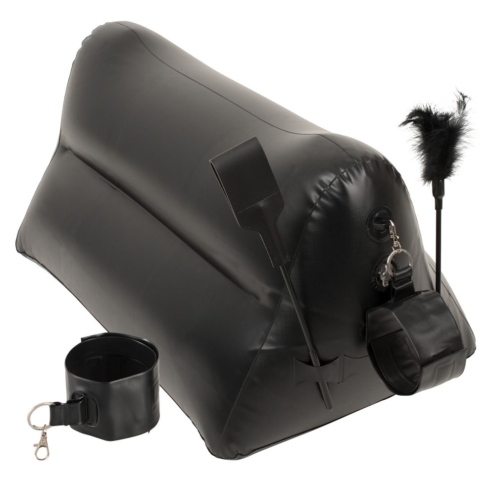 Надувная любовная подушка с наручниками, шлепалкой и пуховкой для увлекательных игр в неволе. Портативная, ее можно брать куда угодно и быстро надуть. Любовная подушка быстро надувается и поддерживает множество положений для совместного секса. Входящие в комплект наручники легко крепятся по бокам с помощью карабинов. В комплекте: любовная подушка, наручники, шлепалка, пуховка. Габариты подушки - 60 х 36 х 36 см. Длина пуховки - 30 см. Длина шлепалки - 31,5 см. Длина манжет наручников - 40 см., ширина - 6 см.