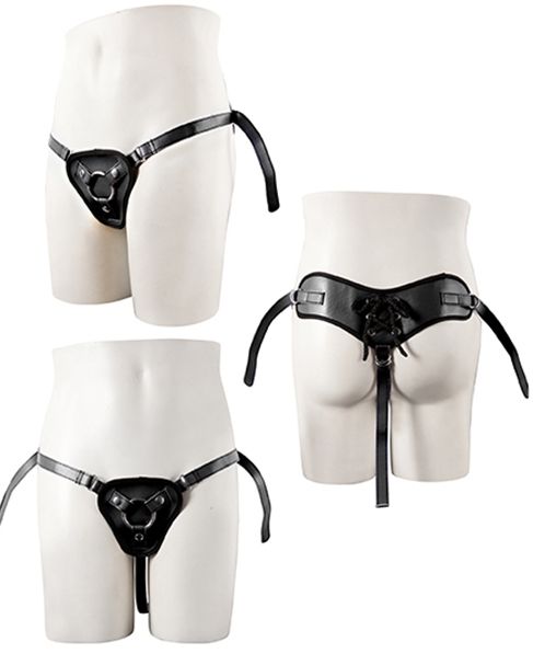 Трусики из искусственной кожи и металлических колец. Поставляется с 2 кольцами разных размеров. Совместимы с широким спектром базовых фаллоимитаторов. Диаметр колец - 4 и 5,4 см.