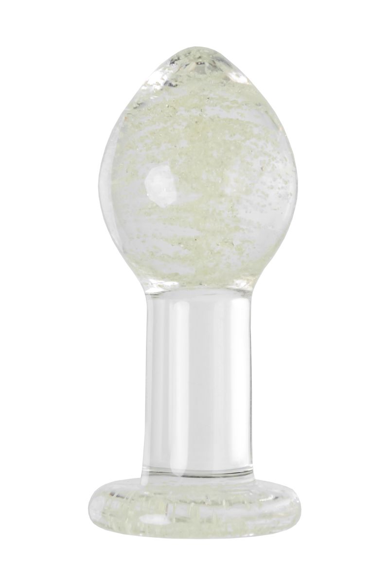 Прозрачная анальная втулка из закаленного стекла содержит флуоресцентные микрочастицы, которые светятся в темноте. Такой необычный дизайн помогает внести в интимные игры разнообразие. Достаточно зарядить игрушку под дневным или искусственным светом, чтобы насладиться ее мерцанием и свечением в темноте. Оптимальный размер, каплевидная форма и наличие ограничителя делают использование анальной игрушки безопасным.