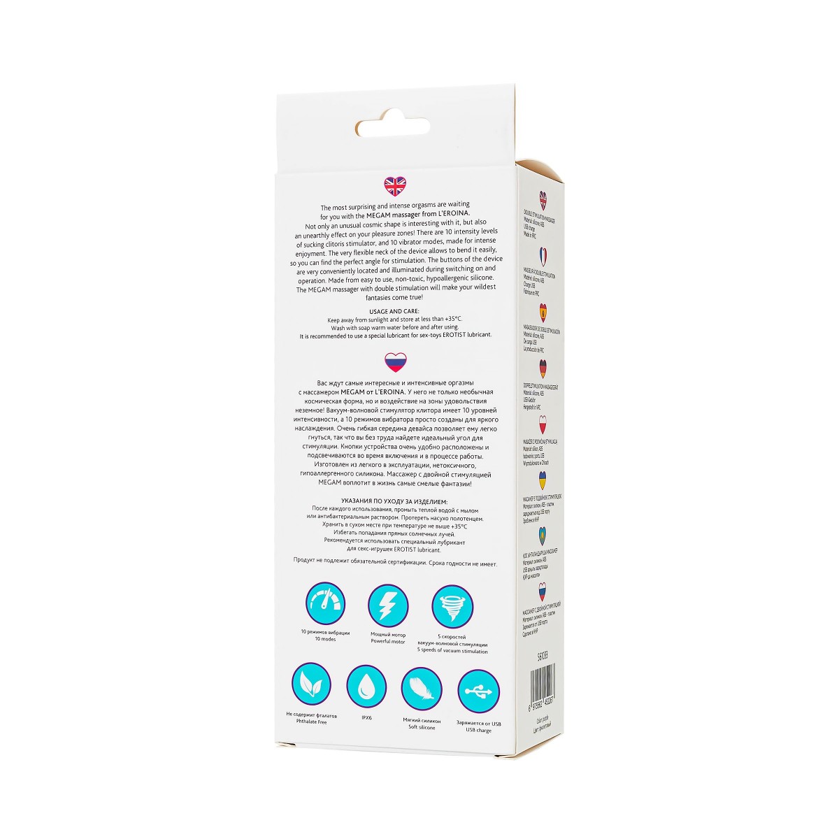 Желаете испытать самые незабываемые и сильные оргазмы? Тогда вибромассажер с вакуумной стимуляцией Megam от бренда L Eroina - именно то, что вам нужно! Его уникальная космическая форма и эйфорическое воздействие на зоны удовольствия приведут вас к неземным ощущениям. Этот вакуум-волновой стимулятор клитора имеет 10 уровней интенсивности, а 10 режимов погружной вибрирующей части созданы для яркого наслаждения и массажа зоны G. Гибкая середина устройства легко гнется, позволяя вам легко найти идеальный угол для стимуляции. Кнопки Megam расположены удобно на корпусе и подсвечиваются во время использования. Изготовлен массажер из легкого в эксплуатации, нетоксичного и гипоаллергенного силикона. С помощью интимной игрушки Megam и двойной стимуляции, воплотить в жизнь самые смелые фантазии станет легче легкого.