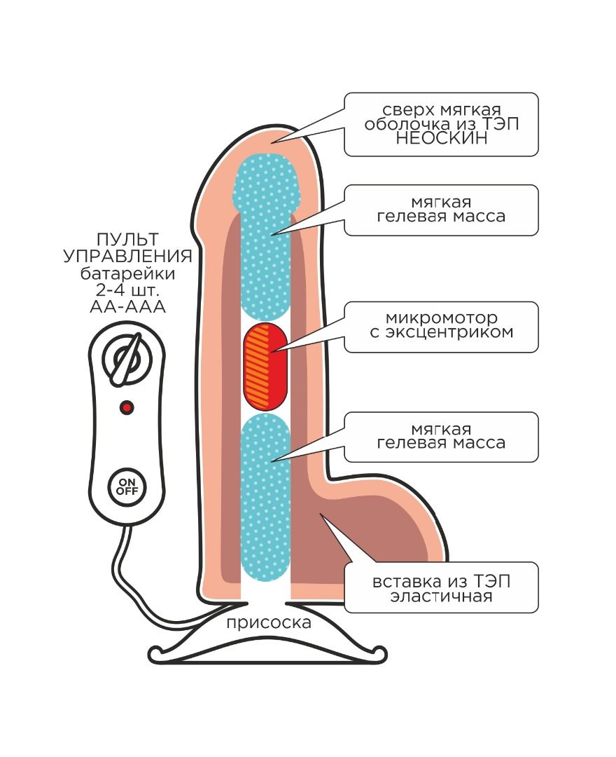 Конструкция изделия выполнена с использованием технологий протезирования и имеет композитную структуру различной жесткости. Фаллоимитатор с присоской комплектуется вибромеханизмом. Девайс предназначен исключительно для ценителей настоящих ощущений, желающих окунуться в водопад наслаждений и удовольствия. Рабочая длина - 19 см. Минимальный диаметр - 4,4 см.